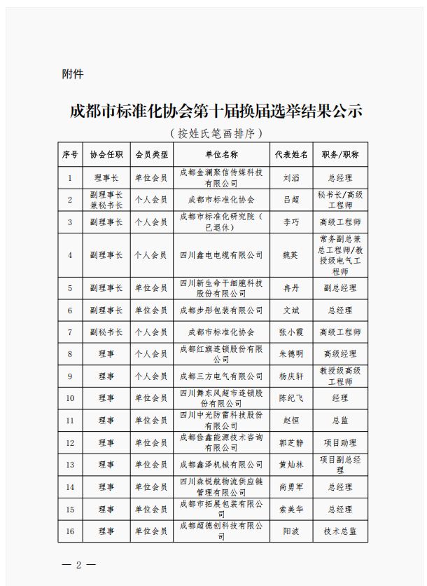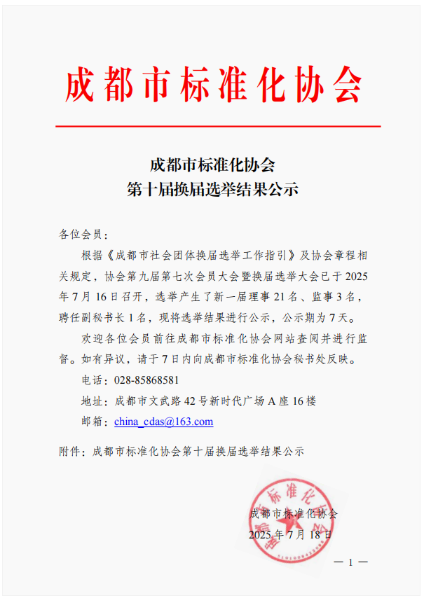成都市标准化协会第十届换届选举结果公示