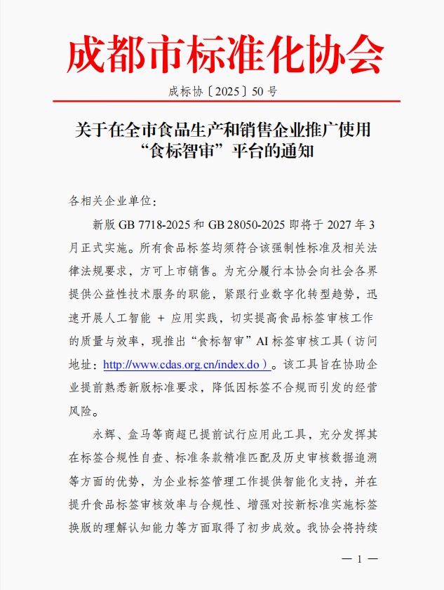 关于在全市食品生产和销售企业推广使用“食标智审”平台的通知