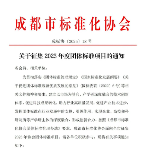 >>>成都市标准化协会关于征集 2026 年度团体标准项目的通知